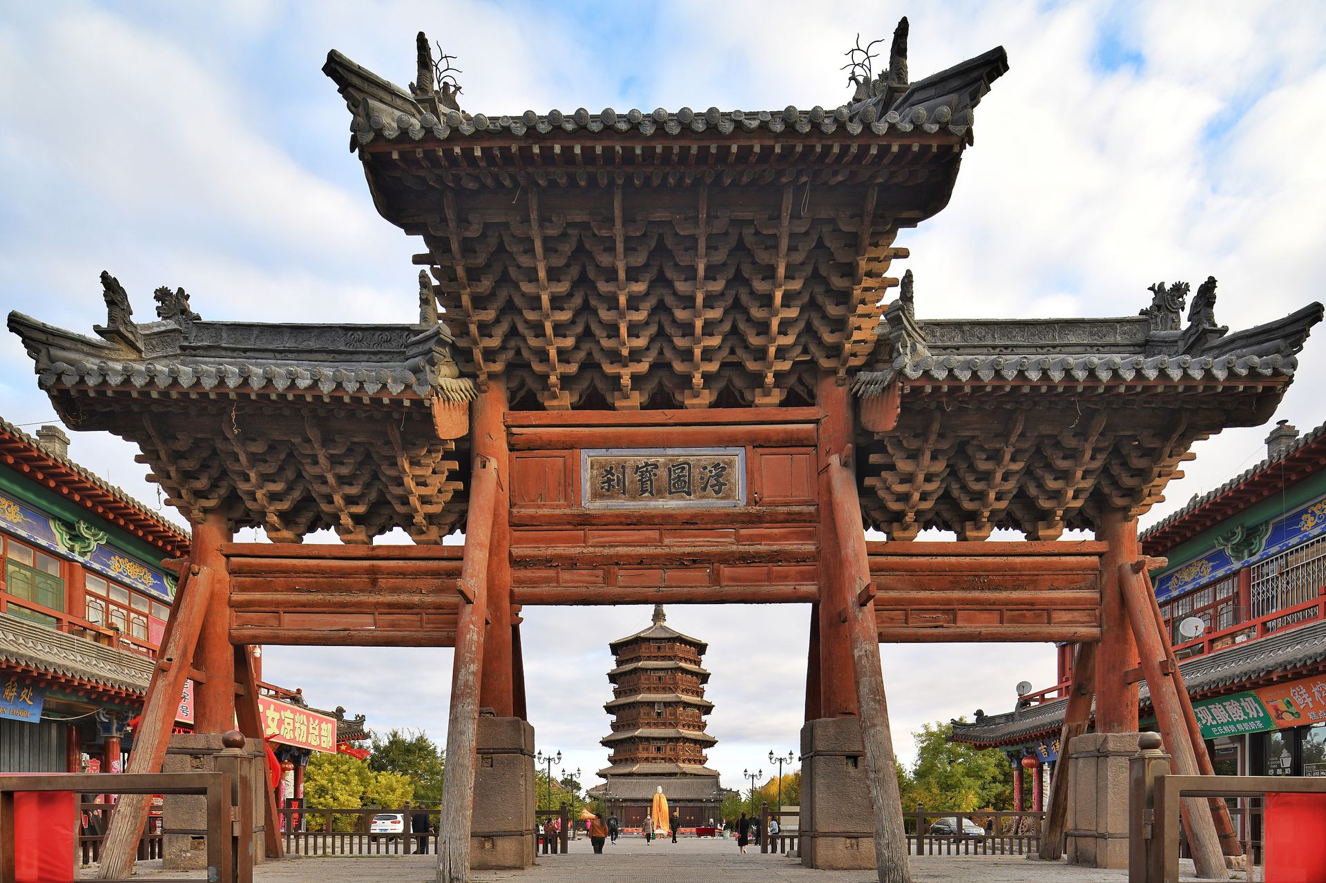 應縣木塔原稱 佛宮寺釋迦塔,位於中國山西省應縣城佛宮寺內,是世界上現存最高的木結構建築之一。建於遼代清寧二年(公元1056年~"清寧"是遼道宗"耶律洪基"的年號,亦即是天龍八部中 與蕭峰結拜之皇帝),距今已有超過950年歷史。應縣木塔 為小弟看過之塔建築中 最為雄偉壯觀 內部結構有如 李小龍電影死亡遊戲一樣 層與層之間 有一長梯相連 登至頂樓 前望遠方 景色令人震撼。
