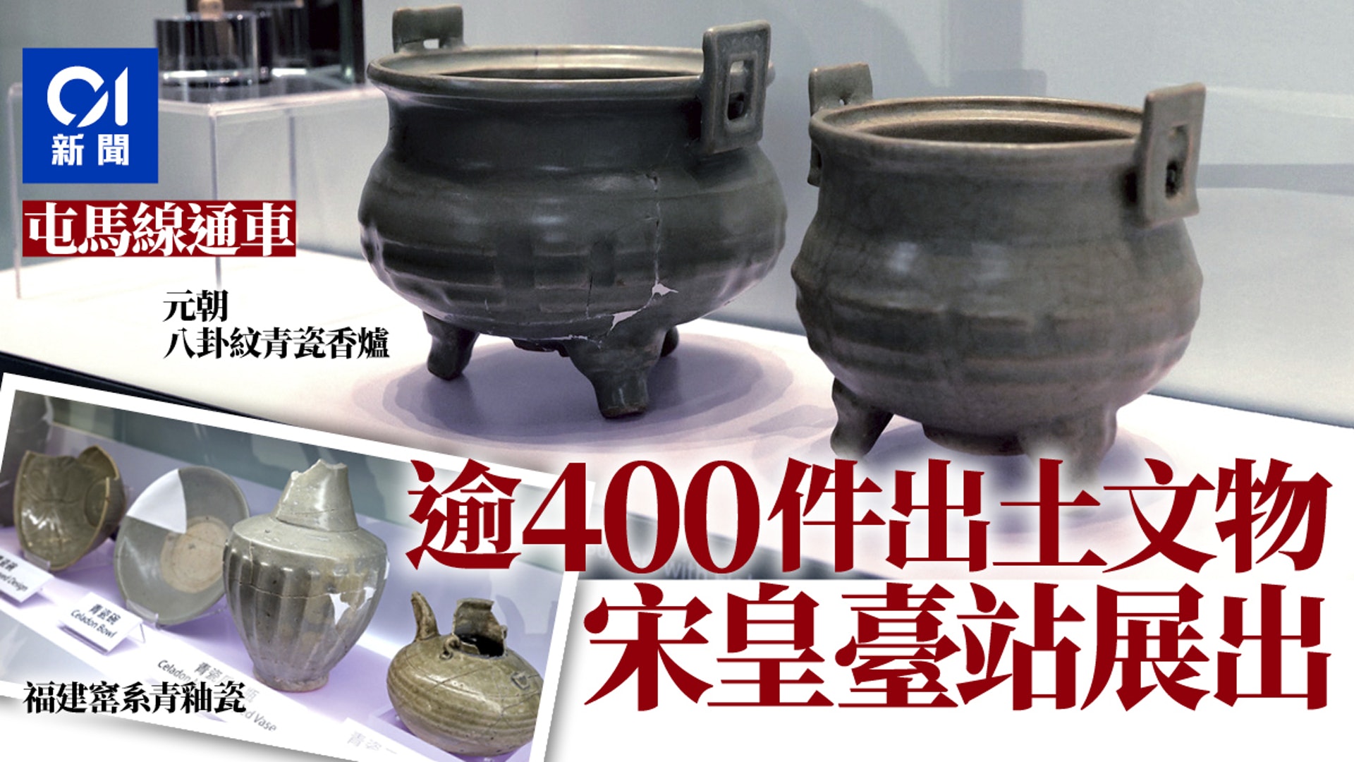 屯馬線 宋皇臺站 工程考古評估期間 挖出多件文物,令工程一度暫停並作考古工作,最終起出以十萬計的文物,加深對香港宋元年代歷史認識。一對八卦紋青瓷香爐(上左圖)為元朝文物,出土時位於水井旁坑道封着,估計與當時水井的祭祠有關。
