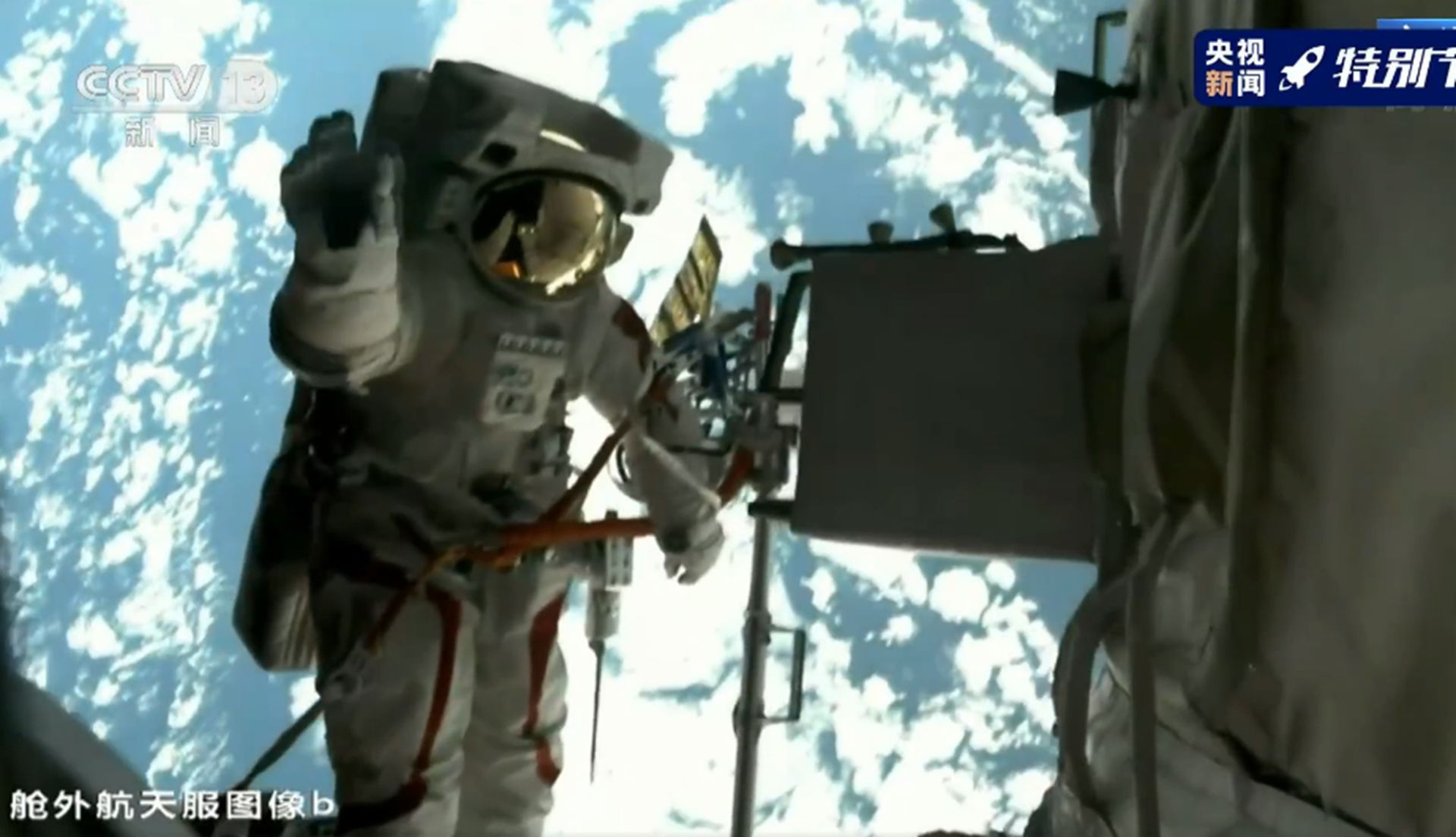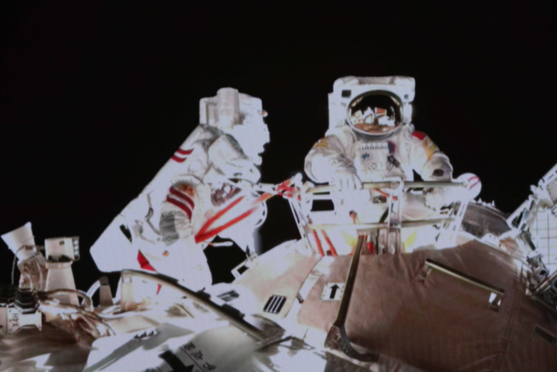 2021年07月4日 ~ 神舟十二號載人飛船兩名航天員,4日早上8時11分起,在中國太空站天和核心艙執行首次艙外任務,是繼神舟七號航天員後,相隔13年再有中國航天員執行艙外任務... 艙外任務由航天員劉伯明和湯洪波執行,一人負責為艙外機械臂安裝上臂支架,隨後借助機械臂移動。另一人則自行借助艙壁上安裝的扶手,爬行一段距離到作業點進行輔助工作,期間還要進行一次應急返回驗證。留守艙內的航天員聶海勝則需要同時操作機械臂配合。