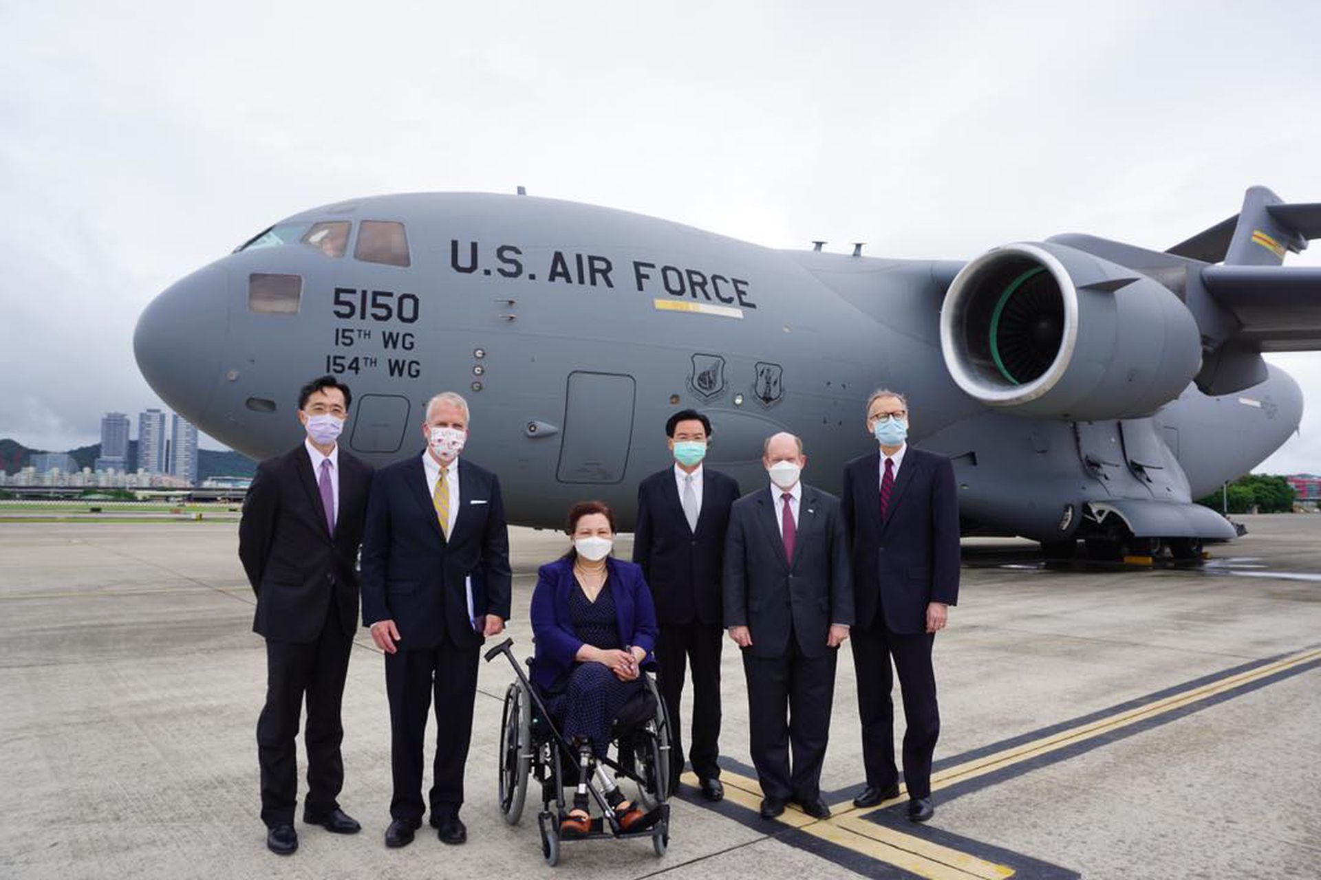 並宣布向台灣捐贈 75萬劑疫苗 ... 美軍出動 戰略運輸機,運送僅僅三名聯邦參議員 訪台,連疫苗都沒有運送,就是因為 禮遇戰爭英雄、民主黨籍參議員 Tammy Duckworth(譚美‧達克沃斯) 因行動不便、需用輪椅上下機的問題 云云...。