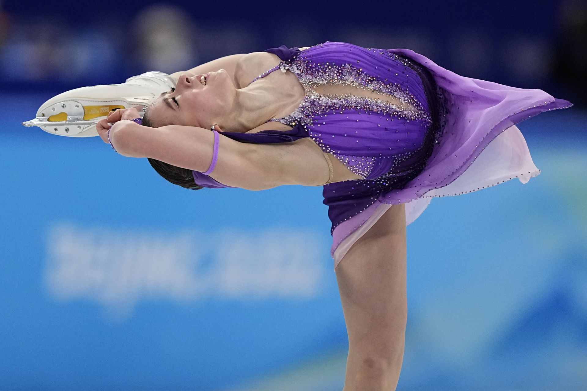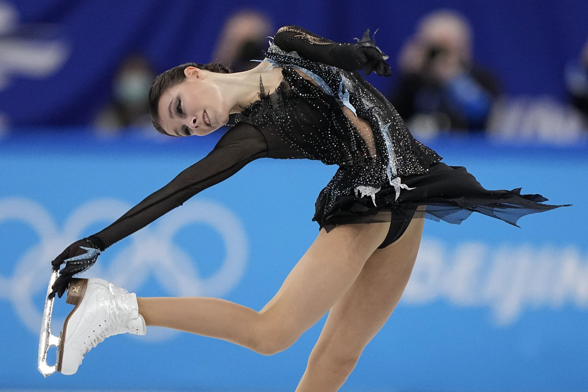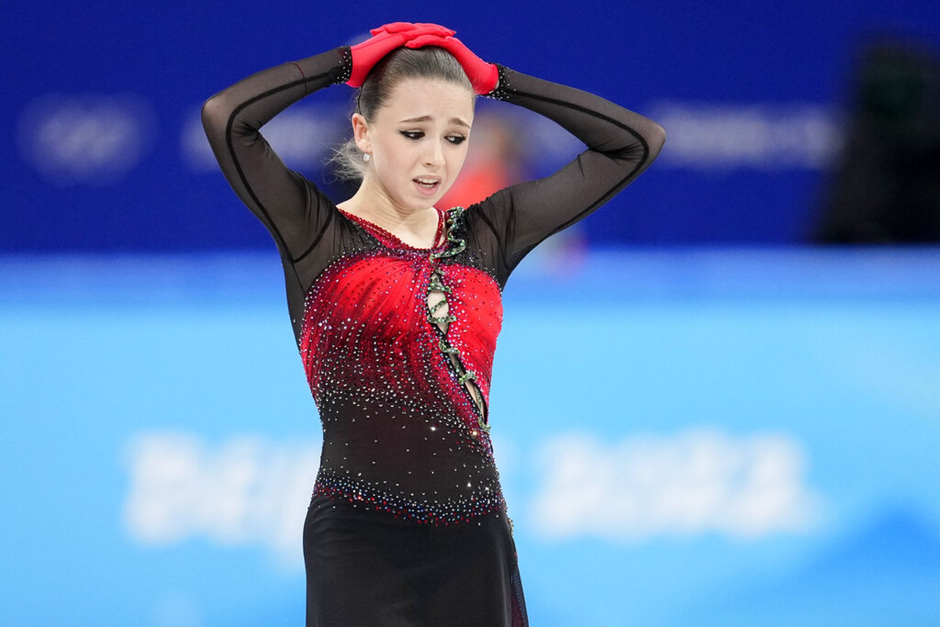 ROC選手 卡米拉·瓦利耶娃(Kamila Valieva) 最後出場,因禁藥問題被受壓力 大失水準,多組跳躍動作 出現失誤,至少兩次着冰失敗而跌倒,最後以224.09的總分 位列第四。