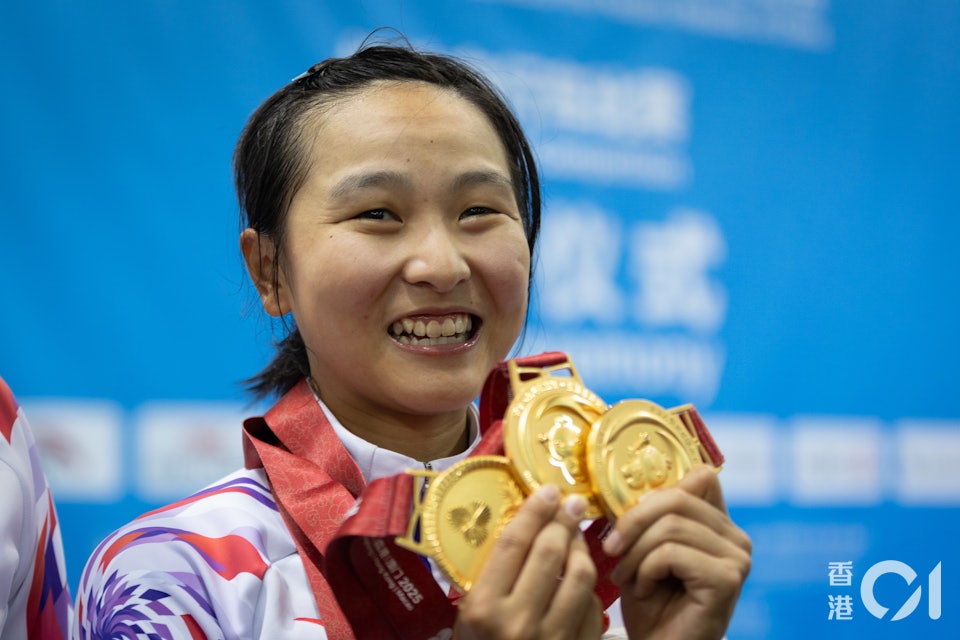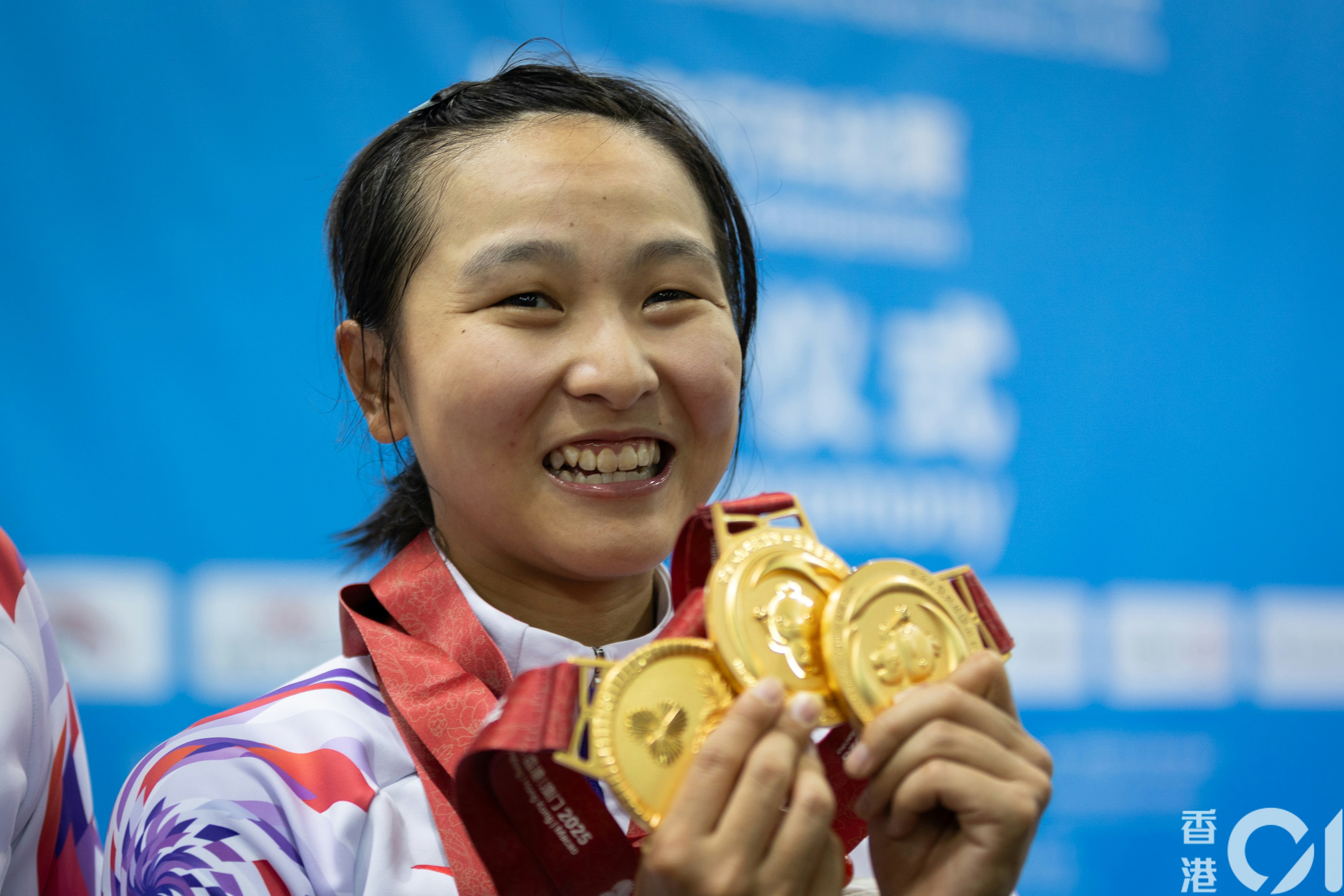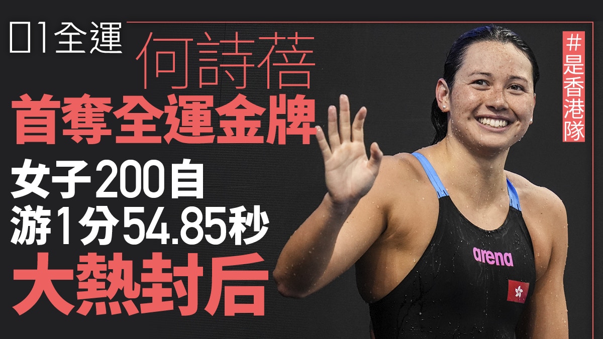 2025年11月13日 ~ 全運會2025游泳項目女子200米自由泳決賽,亞洲紀錄保持者何詩蓓(Siobhán Haughey)以1分54.85秒,順利獲得金牌。今次是這位奧運和世錦賽獎牌得主首度出戰全運會,便在參賽首個項目為香港隊贏得歷來首面全運會游泳金牌,也是今屆港隊第三金。