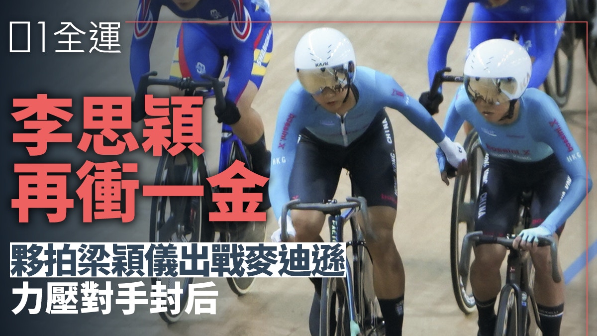 2025年11月16日 ~ 女子個人公路賽金牌李思穎 夥拍梁穎儀出戰女子麥迪遜賽,兩人以壓倒性姿態封后。梁穎儀 本身擅長公路爬山賽,亦在艱苦轉型兼項之下,首次踏上全運頒獎台;她過去在隊伍中一直默默耕耘,儘管甚少進入公眾視線,但她的個人能力一直強橫,堪稱港隊的全能車手。