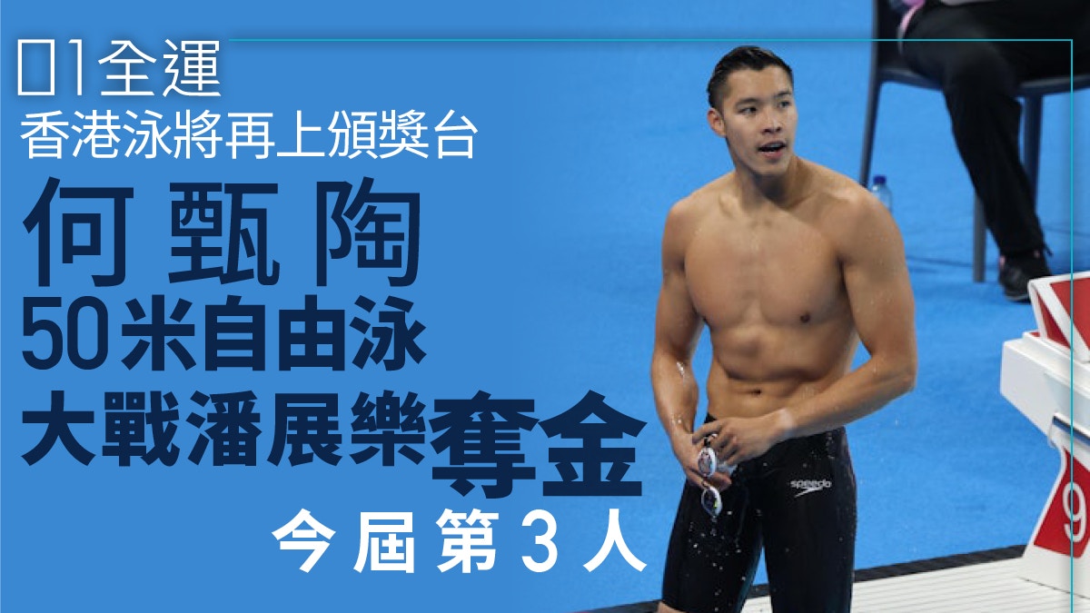 男子50米自由泳決賽 香港泳手 何甄陶 以21.71秒,奪得金牌,並打破由他保持的香港紀錄。潘展樂 游出22.31秒,得並列第三名。何甄陶再次寫下香港游泳歷史新一頁,成為首位踏上全運會游泳項目的香港男泳將。