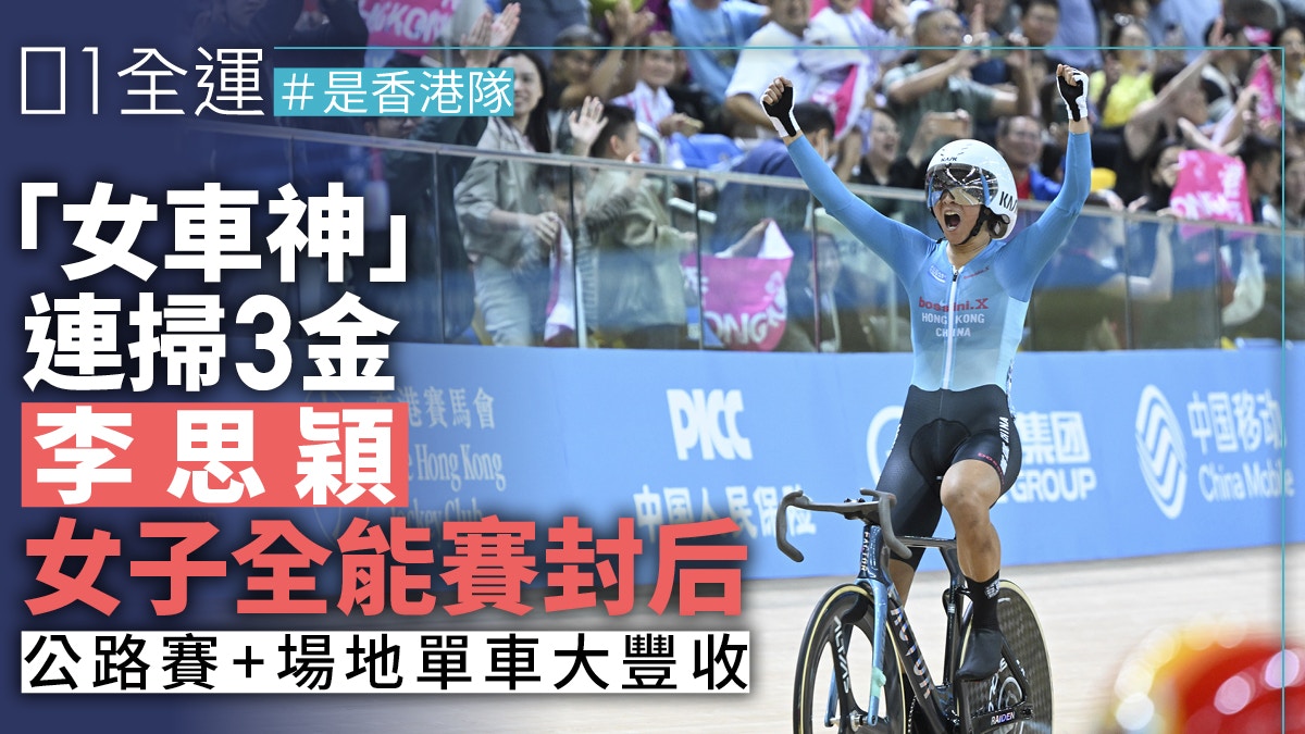 2025年11月17日 ~ 李思穎(Ceci)的「女車神」地位毋庸置疑。她在今屆全運會先於女子個人公路賽揚威,日前再夥拍梁穎儀贏得女子麥迪遜賽,今日出戰主項女子全能賽,奪得個人第三面金牌,單屆全運掃三金,成就前無古人。