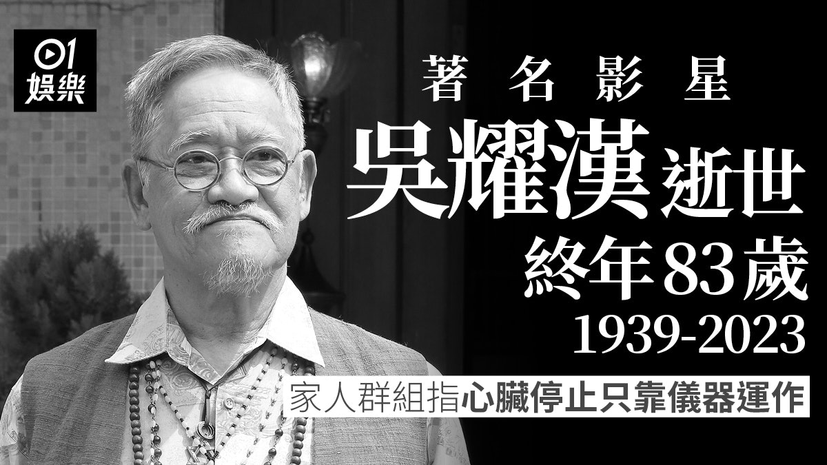 2023年04月10日 ~ 著名影星 吳耀漢 逝世 終年83歲. . . 兩年前 吳耀漢透露已停工兩年,主要是身體出現 不少毛病,曾因心臟血管栓塞做手術,導致嚴重腎衰竭,腎功能只剩約一成,每日要 洗肚4次,而且聽力衰退,下降了大約七成。