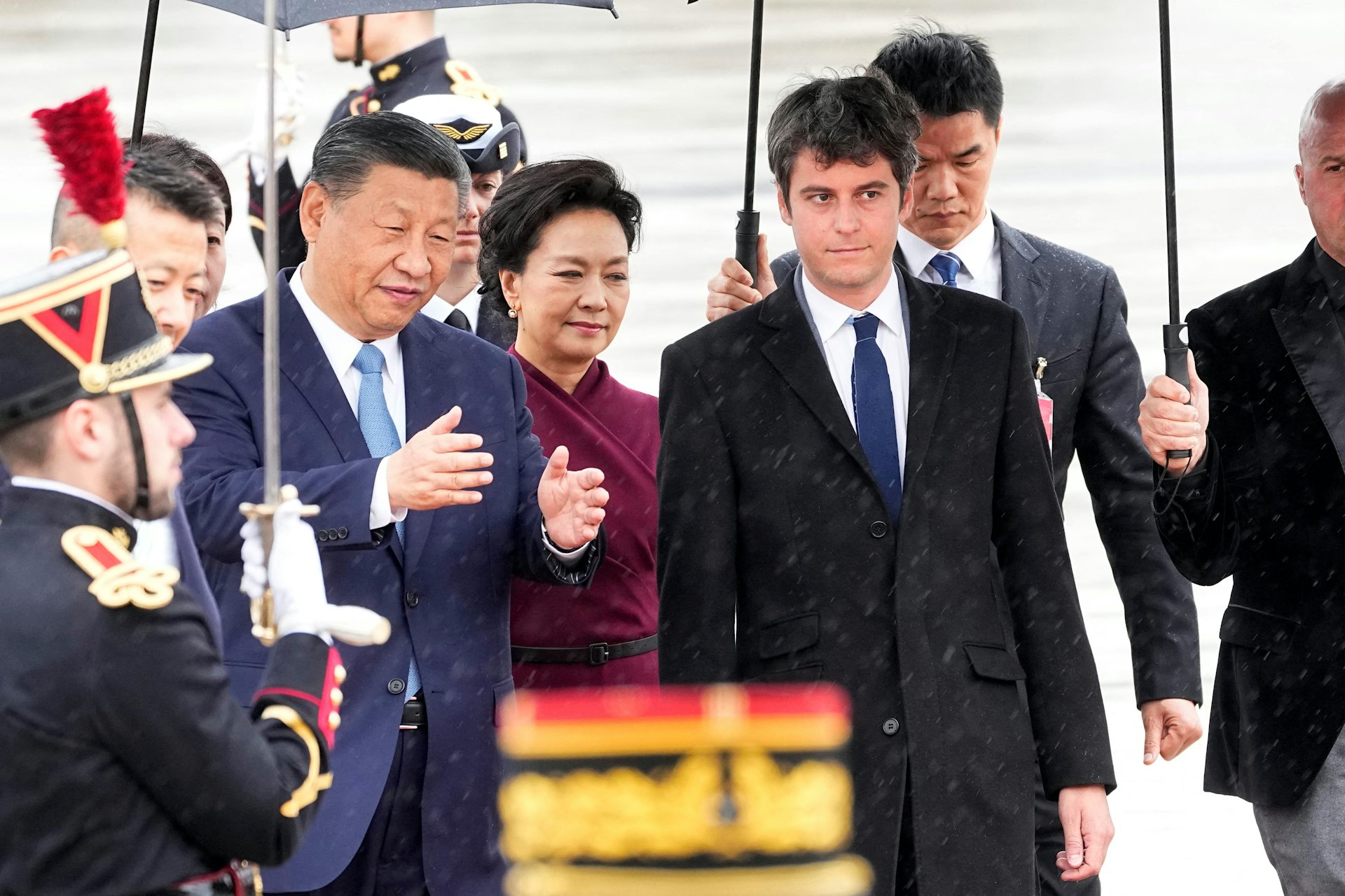 法國總理阿塔爾(Gabriel Attal)等法國政府高級代表於機場迎接。