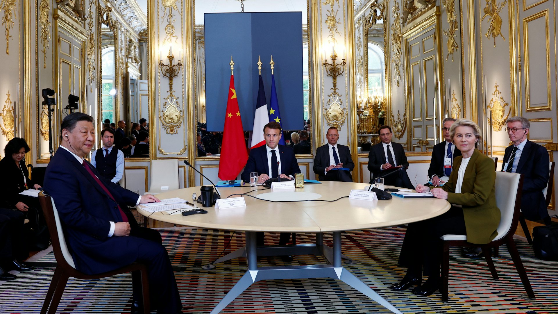 2024年5月6日 ~ 國家主席 習近平 抵達法國愛麗舍宮(Elysee Palace),應約同法國總統馬克龍(Emmanuel Macron)和歐盟委員會主席馮德萊恩(Ursula von der Leyen)舉行中法歐領導人三方會晤。