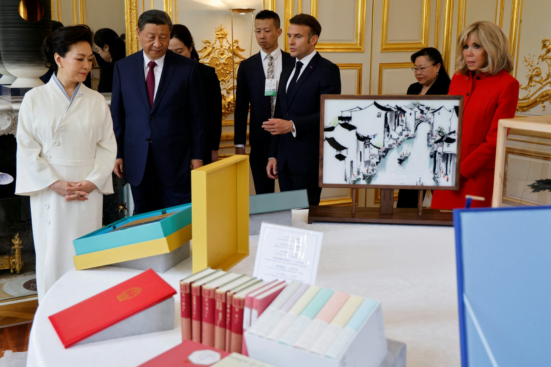2024年5月5日 ~ 中法兩國互送禮物,馬克龍送出干邑白蘭地、軒尼詩X.O.等,外媒形容為「干邑外交」。習近平則贈予法國經典小說的中文翻譯版,包括雨果的《九三年》及書畫等。