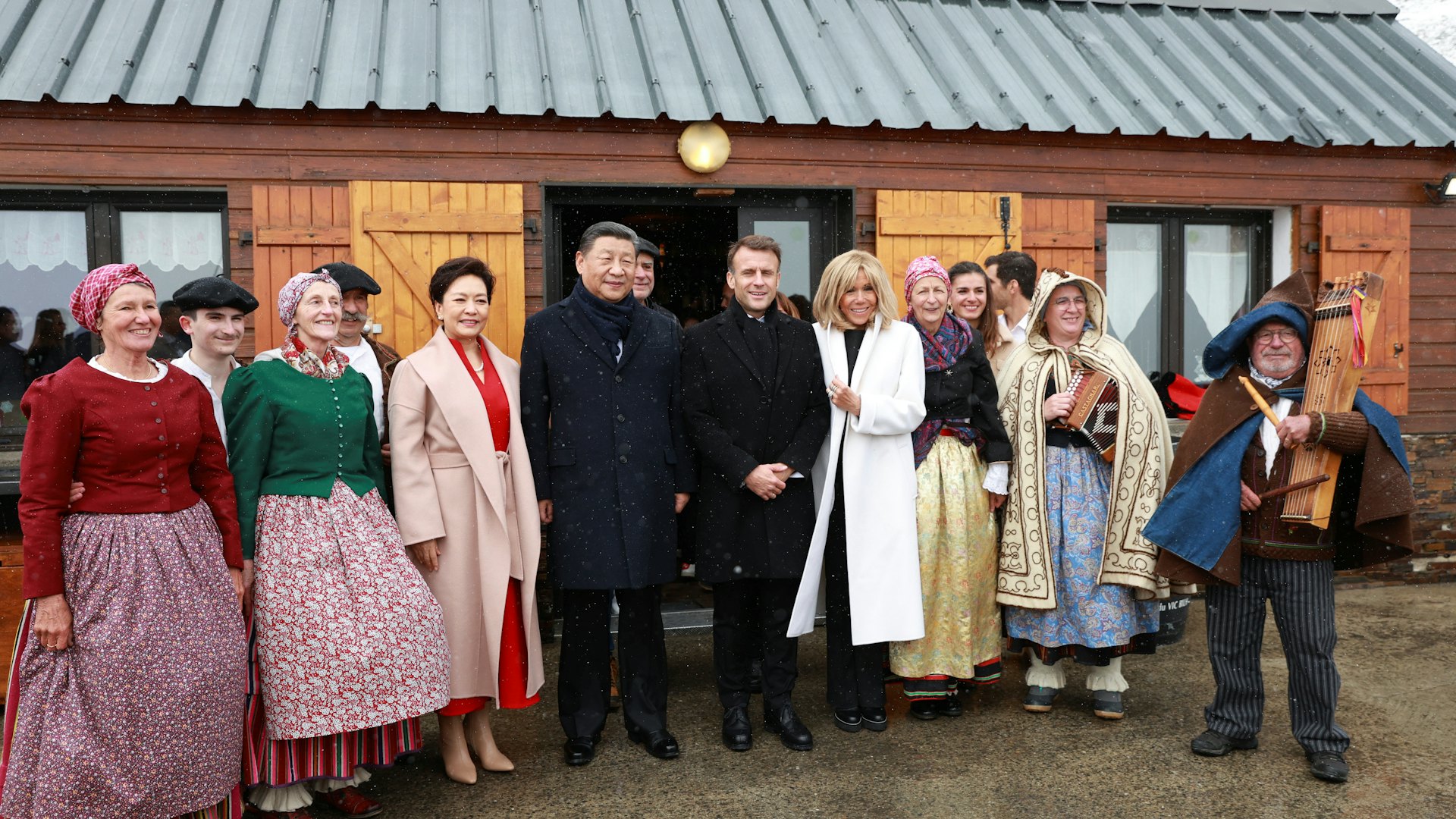 2024年5月7日 ~ 習近平與馬克龍 共遊比利牛斯山,觀賞當地居民的舞蹈表演,並在圖爾馬萊山口的餐廳共進午餐。