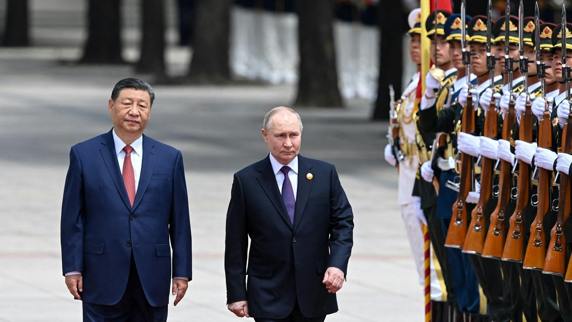 2024年5月16日 ~ 俄羅斯總統普京 今早專機抵達北京。國家主席習近平今早在北京人民大會堂東門外廣場舉行儀式歡迎普京。其後,兩人舉行小範圍會談。